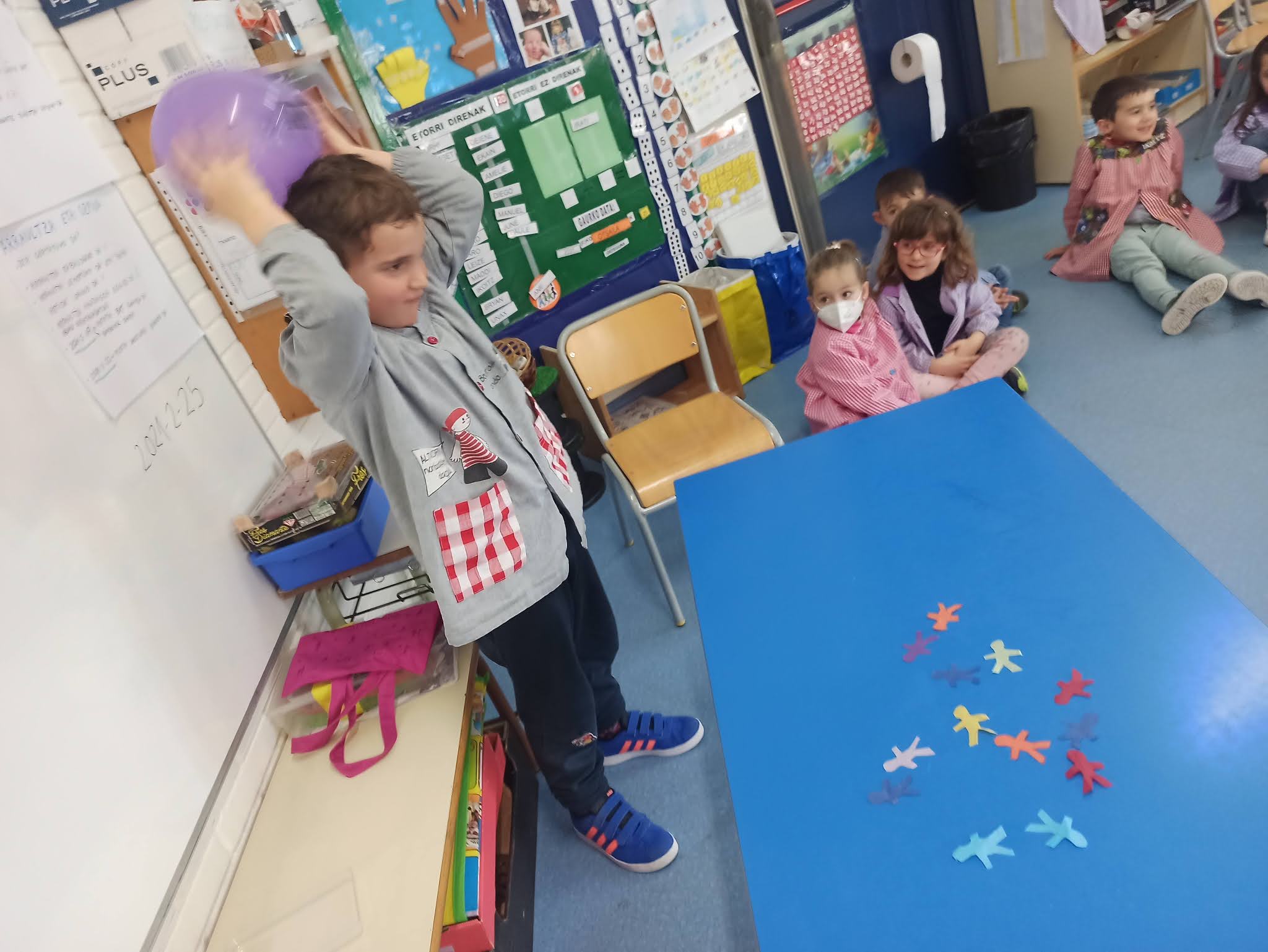 En este experimento presentamos ante l@s niñ@s un globo y varios figuras de papel.
